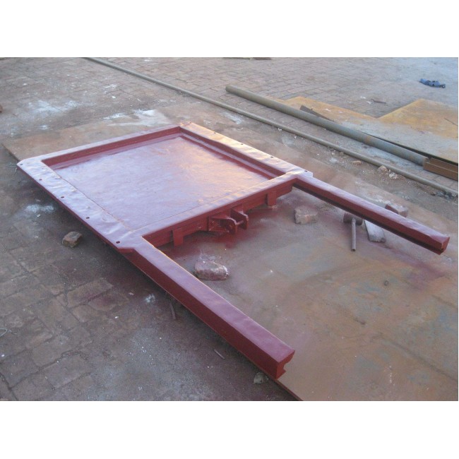 門體一般采用面板與加強(qiáng)肋的結(jié)構(gòu),面板可做平面或拱形。門體一般整體鑄造和機(jī)加工,但尺寸較大的可采用分塊組成式。門體上一般采用整體式金屬止水,兼作支承滑塊,金屬止水用同材料制作的沉頭螺釘緊固在門體上,螺釘頭部與止水工作面一起精加工,一些尺寸較大的也可“P”形橡皮止水。