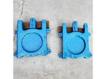 鑄鐵閘門是一種小型平板閘門,廣泛使用于取水輸水、市政建設(shè),給水排水、農(nóng)田灌溉等工程中,通常設(shè)置在渠道、涵管的進水口,用作工作閘門調(diào)節(jié)流量、控制水位,或用作檢修閘門關(guān)閉孔口擋水。門體一般采用面板與加強肋的結(jié)構(gòu),面板可做平面或拱形。門體一般整體鑄造和機加工,但尺寸較大的可采用分塊組成式。門體上一般采用整體式金屬止水,兼作支承滑塊,金屬止水用同材料制作的沉頭螺釘緊固在門體上,螺釘頭部與止水工作面一起精加工,一些尺寸較大的也可“P”形橡皮止水。